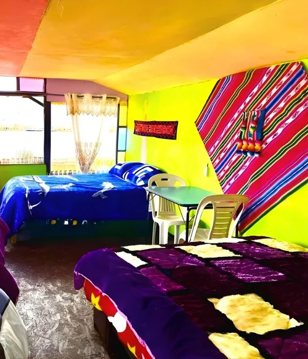 Disfruta una estadía íntima y relajante en nuestra Habitación Doble con vista al Lago Titicaca, ubicada sobre las Islas Flotantes de los Uros. Ideal para viajeros que buscan una experiencia auténtica y conexión con la naturaleza, sin dejar de lado el confort y la privacidad.